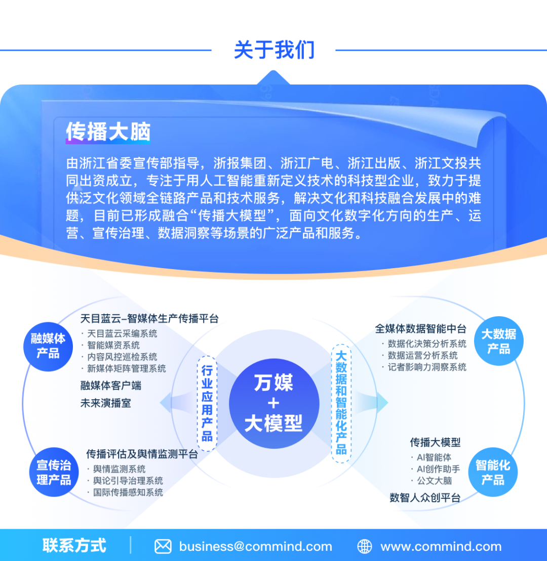 与此同时,行业对传播大脑在媒体AI领域的实践也给予了积极认可。2025年,公司入选“浙江省人工智能服务商”“浙江省人工智能服务行业领军企业”;核心产品“传播大模型”也获得“王选新闻科学技术奖”一等奖、第四届琶洲算法大赛大模型赛道亚军等重要奖项。