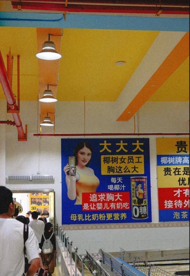 问题是,这些低俗广告不仅是女员工是否有意见,而是违反社会公序良俗,在暗示椰奶有特殊功用。哪怕只是在厂区宣传,依然是违法行为,更别说开放工厂给人参观。
